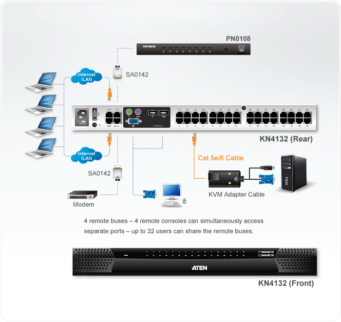 Nowa generacja przełączników KVM over IP firmy Aten - seria KN - pozwala operatorom na dostęp lokalny za pośrednictwem konsoli oraz na dostęp zdalny za pośrednictwem protokołu IP w celu monitorowania i dostępu do całego centrum danych poprzez sieć przy użyciu przeglądarki internetowej. Ponadto oferują one dostęp poza pasmem podstawowym dzięki wsparciu dla modemu zewnętrznego w celu rozwiązywania problemów na poziomie systemu BIOS, gdy sieć nie działa.