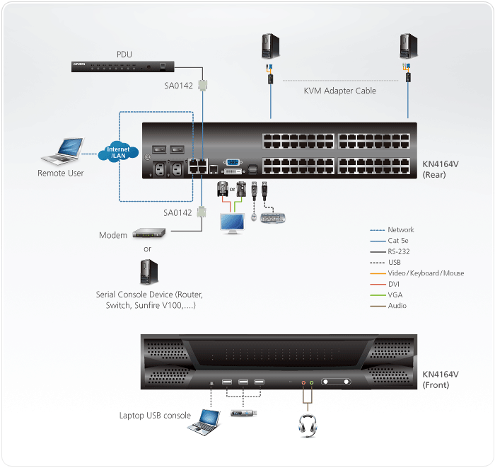 4-ta generacja przełączników KVM over IP ATEN, wykracza poza oczekiwania. KN4164V to doskonała jakość wideo (rozdzielczość 1920 x 1200), standardy zabezpieczenia FIPS 140-2 poziomu 1 i podwojona szybkość transmisji z nośników wirtualnych. Seria KN udostępnia użytkownikom lokalną konsolę i zdalny dostęp przez IP do monitorowania i dostępu do ich centrów danych przez sieć. Dodatkowo, oferuje dostęp poza pasmem z obsługą zewnętrznego modemu do rozwiązywania problemów na poziomie BIOS przy wyłączeniu sieci.