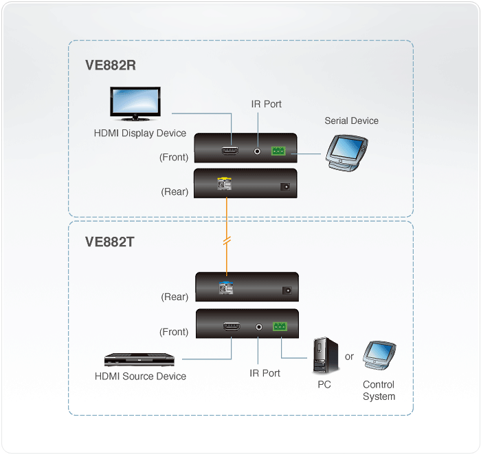 VE882 to optyczny przedłużacz HDMI, który pozwala obejść ograniczenie długości określone normą HDMI przez zastosowanie światłowodu, umożliwiającego przesyłanie sygnału audio i wideo wysokiej rozdzielczości na dużą odległość.