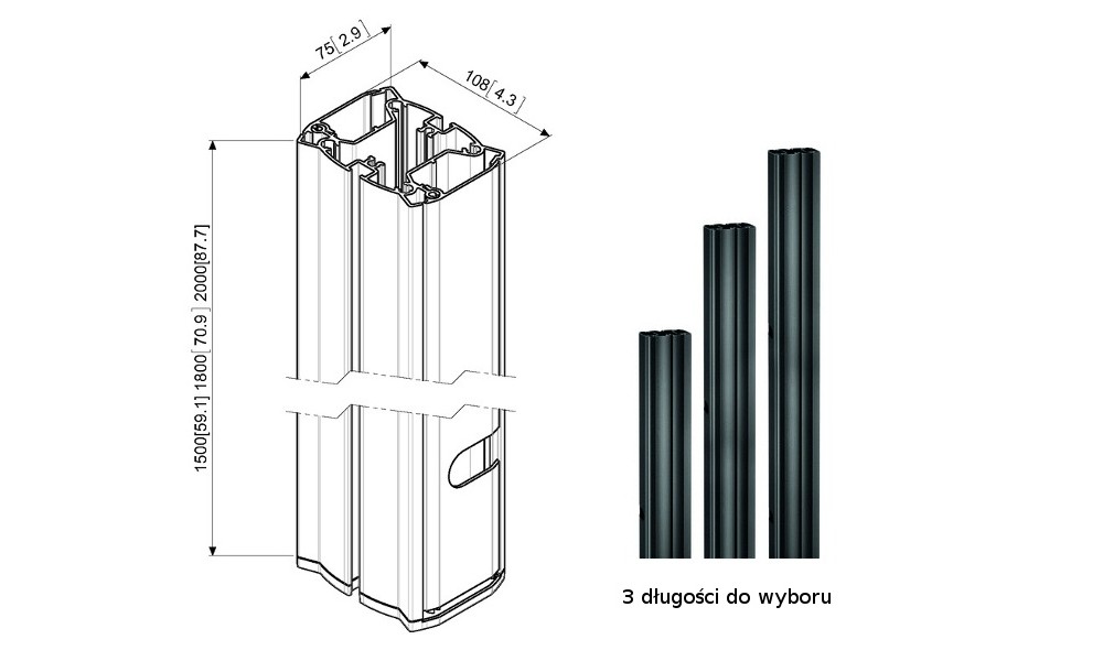 • Aluminiowe słupy dostępne w 2 kolorach: czarny lub srebrny.