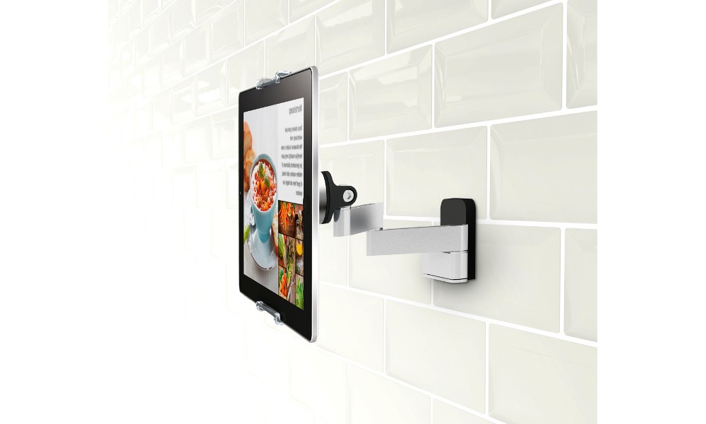 Pojedyncze ramię przegubowe z trzema osiami skrętnymi pozwala na ustawienie tabletu praktycznie w każdym kierunku. Odległość oglądania można dostosować do indywidualnych potrzeb. Regulacja od ściany 4-200 mm. Obrót 180° oraz pochylenie 15°.